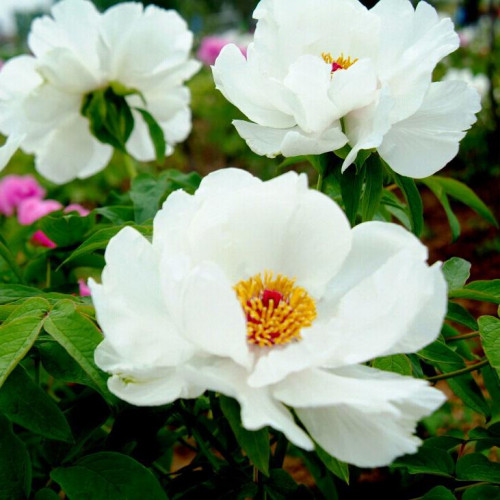Древовидный пион отличается крупными размерами. Имеет хорошую морозостойкость.