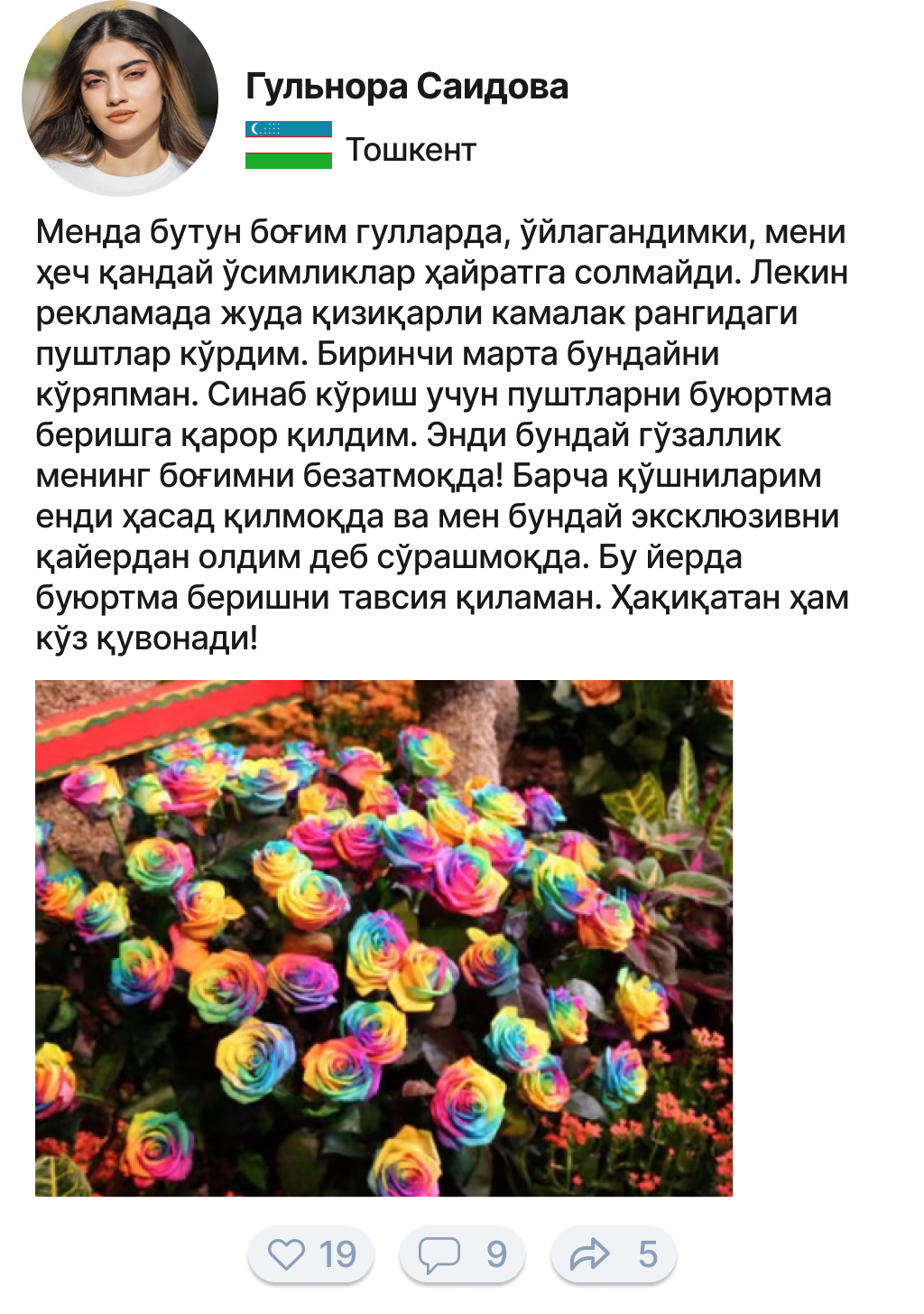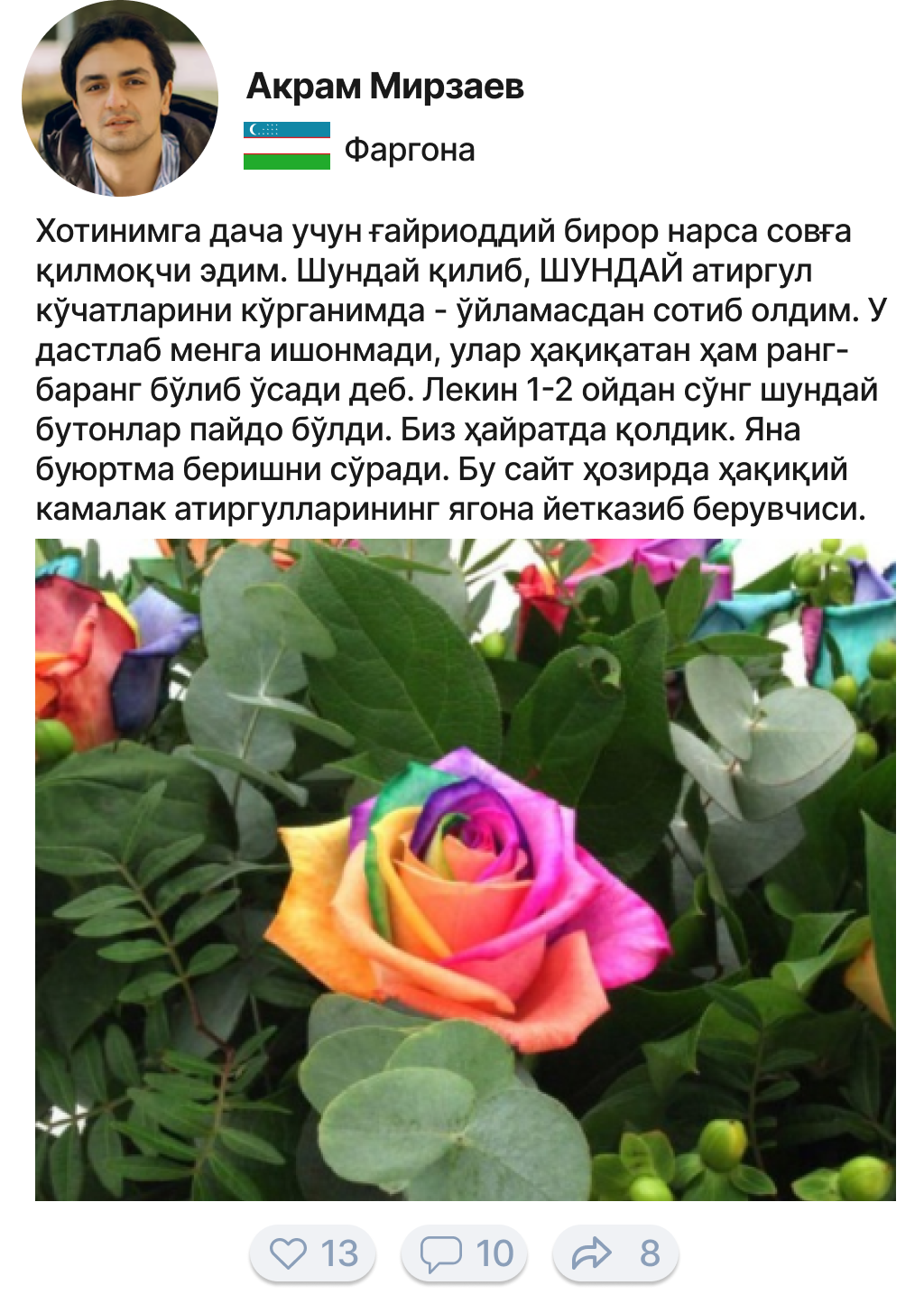 Бизда атиргулнинг бошқа ажойиб навларини ҳам сотамиз